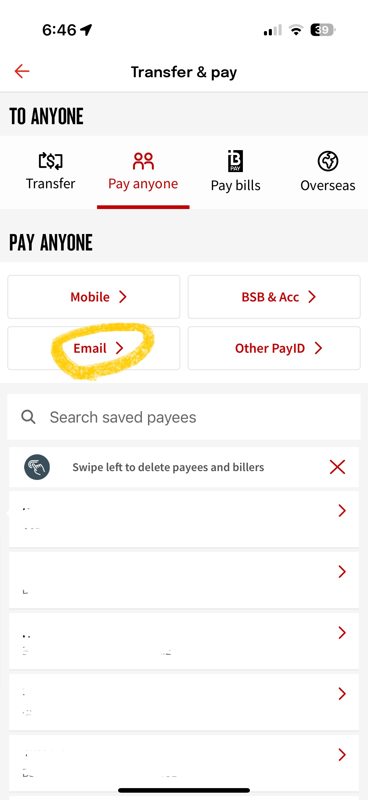 저는 NAB 은행을 사용하고 있어서 NAB기준으로 설명드릴게요! 기본적으로 친구들에게 PayID로 송금하듯이 보내는 거에요.