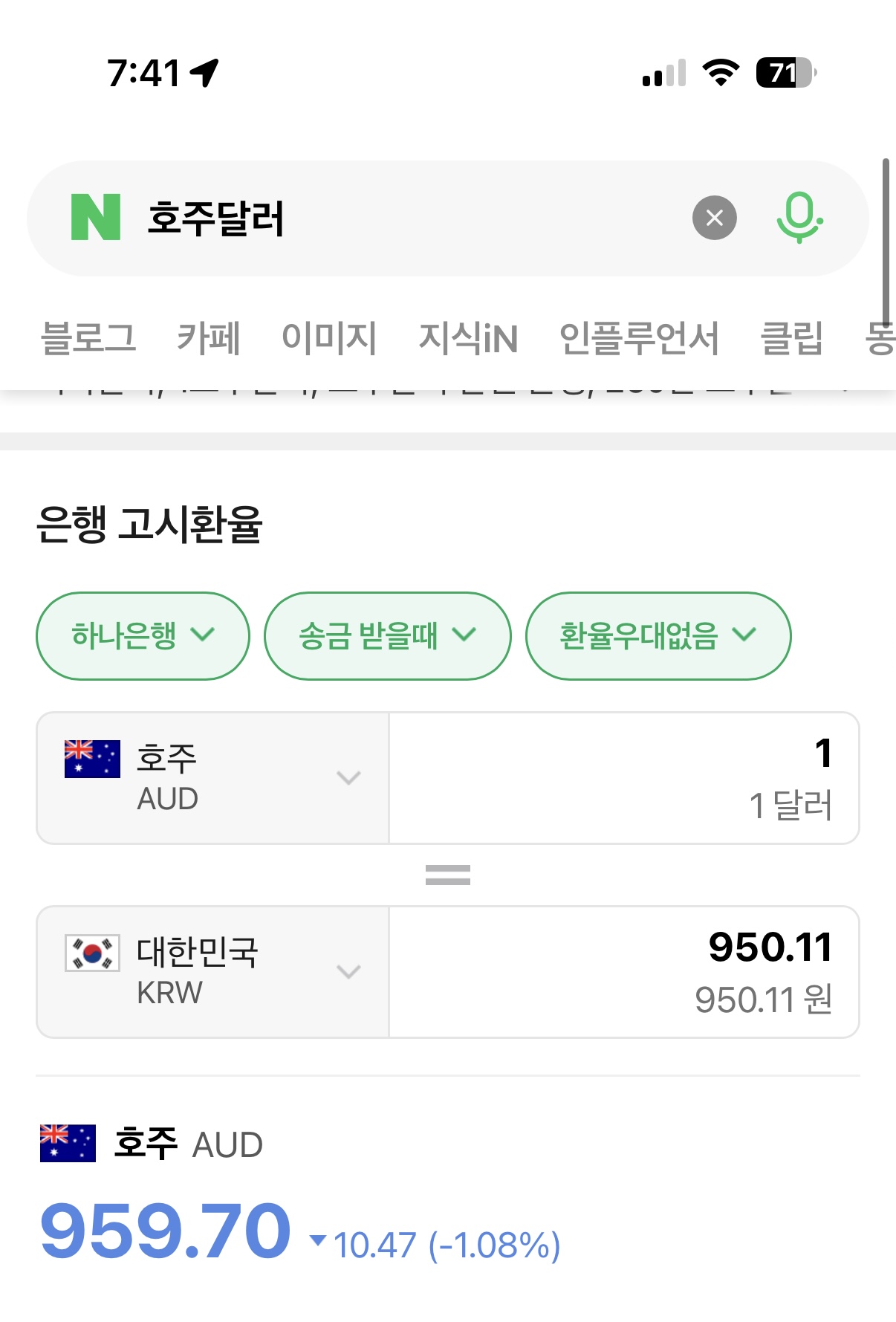 먼저 현재 호주달러 환율을 네이버에 검색해서 비교해볼게요!