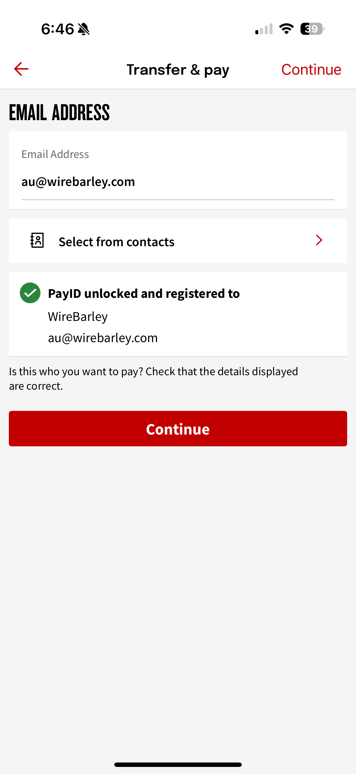 PayID가 Email 이기 때문에 Email로 들어가주시고, 아까 중요한 정보화면에 적혀있던 이메일을 그대로 복사해서 붙여넣으면